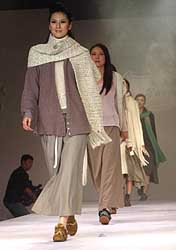 九月二十三日晚,香港時(shí)裝設(shè)計(jì)師吳美儀以簡(jiǎn)約大氣,洋溢陸歐風(fēng)情的時(shí)裝作品在2004青島國際時(shí)裝周上亮相。作者:史利