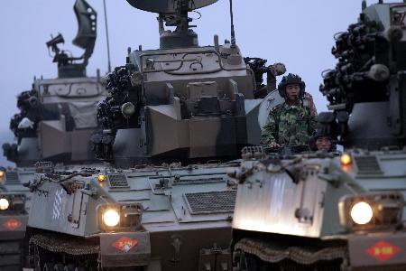 中國(guó)人民解放軍濟(jì)南軍區(qū)某部25日在位于河南的確山訓(xùn)練基地進(jìn)行了代號(hào)為“鐵拳-2004”的加強(qiáng)機(jī)械化步兵師級(jí)實(shí)兵實(shí)彈演習(xí)。