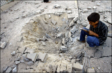 路透社電視新聞畫面顯示,到現(xiàn)場搶救的人把生還者從一處被炸毀的建筑內(nèi)拉出來,其中有兩名婦女和兩名兒童。