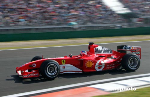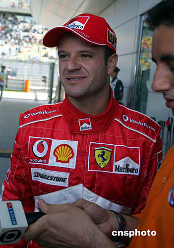 九月二十五日,F(xiàn)1中國大獎賽排位賽在上海國際賽場舉行,法拉利車手巴里切羅以一分三四秒取得桿位。車王舒馬赫在正式排位賽第一個彎道賽車滑出賽道,明天將在最后一位發(fā)車。作者:潘索菲