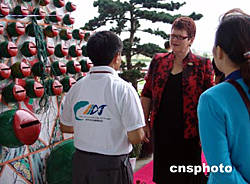 南通別具特色的民間藝術(shù),引起正在該市參加首屆世界大城市帶高層論壇嘉賓們的興趣。圖為新西蘭前總理希普利在饒有興趣地觀賞南通的哨口風箏表演.作者:王曉紅