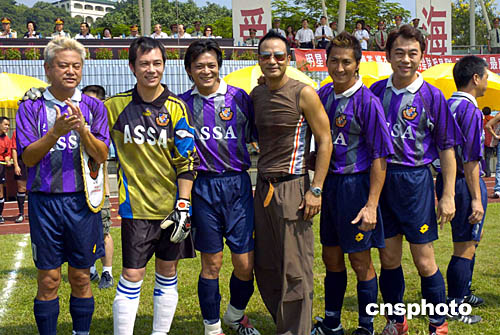 9月28日中秋節(jié),駐港解放軍與香港明星足球隊在昂船洲軍營舉行足球友誼賽,結(jié)果駐軍以2比5負香港明星隊。作者:洪少葵