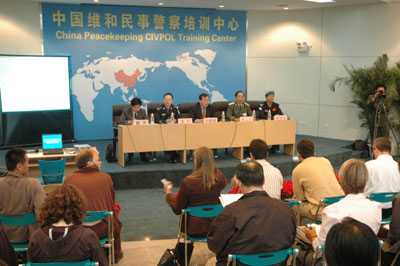 記者們首先參觀了新近落成的中國維和民事警察培訓(xùn)中心。公安部外事局維和處處長談鈞在這里向記者介紹了中國參與聯(lián)合國維和行動(dòng)的有關(guān)情況。