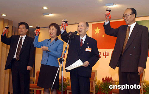 三十日,澳門中華總商會舉行大型酒會慶祝中華人民共和國成立五十五周年,全國政協(xié)副主席、澳門中華總商會會長馬萬祺、澳門特別行政區(qū)代理行政長官陳麗敏司長、澳門中聯(lián)辦副主任王今翔、外交部駐澳門特派員萬永祥等出席了酒會。作者:梁永強