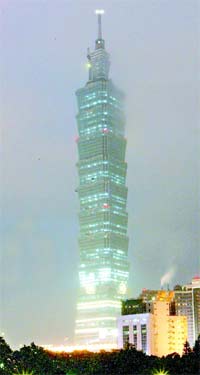 臺(tái)北101大樓高508米,比紀(jì)錄保持者馬來西亞吉隆坡的雙子座大廈高56米。有世界最大且最重的“風(fēng)阻尼器”,還有兩臺(tái)世界最高速的電梯,以1,010米速度運(yùn)行,從1樓到89樓,只要39秒的時(shí)間。“世界高樓”的四項(xiàng)指針下,101大樓拿下世界最高建筑物、世界最高使用樓層和世界最高屋頂高度三項(xiàng)世界第一。美國(guó)芝加哥的席爾斯大樓則仍保持“世界最高天線高度”的榮銜。