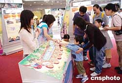 香港九廣鐵路周日在時代廣場舉辦展覽,推介馬鞍山、尖沙嘴新支線,進一步拓展鐵路網(wǎng)絡(luò),計劃在2004年底落成。圖為市民參觀展覽。作者:洪少葵