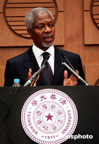 正在北京訪問(wèn)的聯(lián)合國(guó)秘書(shū)長(zhǎng)安南,十月十一日在清華大學(xué)發(fā)表演講。中新社記者:毛建軍