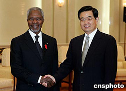 安南感謝胡錦濤主席的會見,表示贊同胡主席對國際形勢的分析和看法,感謝中國政府長期以來對聯(lián)合國和他本人工作的支持。安南說,中國在國際事務(wù)中的作用和影響正日益上升,是維護(hù)世界和平與發(fā)展的重要力量。在實現(xiàn)聯(lián)合國提出的千年發(fā)展目標(biāo)方面,中國政府取得了積極的成果。聯(lián)合國改革的目的是使聯(lián)合國更好地應(yīng)對各類威脅與挑戰(zhàn),需要包括中國在內(nèi)的廣大會員國繼續(xù)給予大力支持。