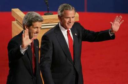 中新網(wǎng)10月14日電 美國總統(tǒng)候選人第三場辯論于美東時間13日晚9點在亞利桑那州立大學(xué)展開。由于是投票日前的最后一場辯論,布什與克里都將全力抓住這次給全國選民留下深刻印象、宣講施政方針、全面攻擊對方的最重要機會。
