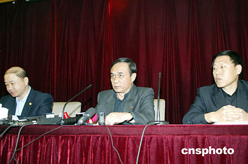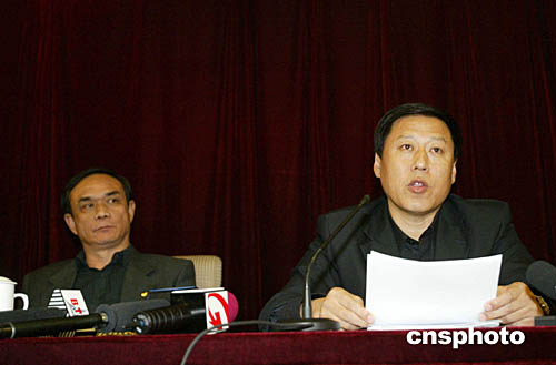 馬成全(右)宣讀中國足協(xié)對北京現(xiàn)代隊的處罰規(guī)定