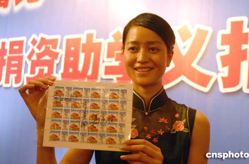 | “神舟”五號(hào)飛船搭載紀(jì)念郵票將于今年年底在成都拍賣,拍賣所得傭金將全部捐助西部教育事業(yè)!吧裰邸蔽逄(hào)搭載紀(jì)念郵票是隨“神舟”五號(hào)一起遨游太空的唯一三個(gè)整版,中國航天員楊利偉、聶海勝、翟志剛?cè)嗽卩]票上親筆簽名。圖為禮儀小姐展示其中一個(gè)整版。作者:郭晉嘉