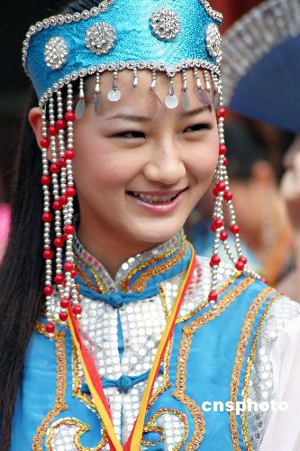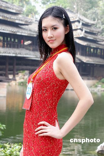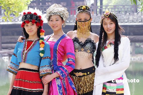 2004年10月17日,中國模特之星全國20個(gè)分賽區(qū)前三名的60名選手在南寧民族文物苑進(jìn)行民族裝外景拍攝。駱文剛 攝