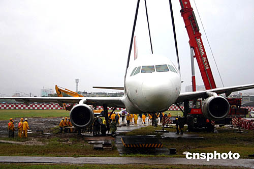 復(fù)興航空表示,滑出跑道的飛機(jī)機(jī)鼻部分前輪受損,造成機(jī)身傾斜,加上天雨,要將飛機(jī)拖離現(xiàn)場,要花一些時(shí)間。