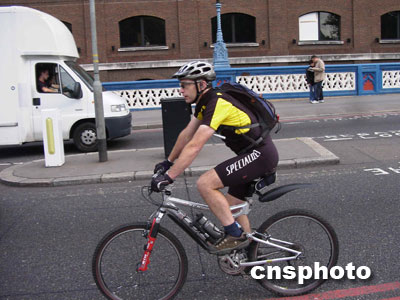 正如在不少西方城市一樣,很多來(lái)自中國(guó)的訪客會(huì)在倫敦街頭“敏銳”地發(fā)現(xiàn),這里的自行車(chē)實(shí)在太少了。其實(shí),自行車(chē)在這里作為一種健身工具的意義,要?jiǎng)龠^(guò)它作為交通工具的意義。騎車(chē)人也常!叭蔽溲b”,打扮得象個(gè)職業(yè)運(yùn)動(dòng)員。但聽(tīng)說(shuō),他們中的一些人可是在金融區(qū)工作的白領(lǐng),騎車(chē)時(shí)背后背著的行囊里,就裝著另一套“行頭”——職業(yè)正裝。