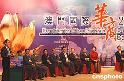 澳門國(guó)際華商經(jīng)貿(mào)會(huì)議2004,二十日在澳門旅游塔會(huì)展娛樂(lè)中心舉行,有五百多名海內(nèi)外華商社團(tuán)及企業(yè)精英出席活動(dòng),會(huì)議為期二天。作者:梁永強(qiáng)