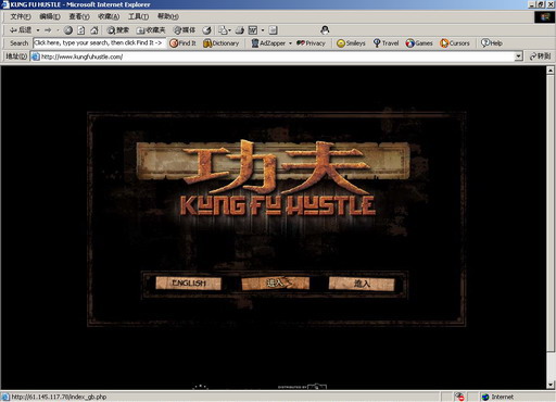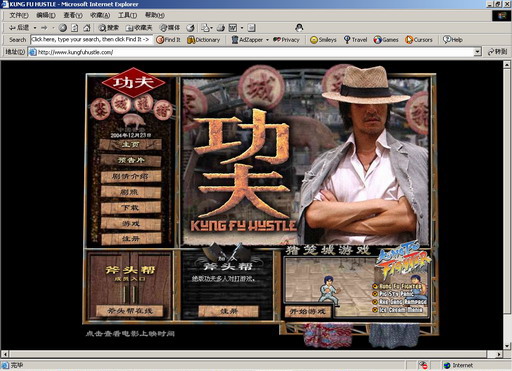 昨日,記者提前進(jìn)入網(wǎng)站,看到了非常搞笑的預(yù)告片片斷———周星馳在豬籠城寨被拿蔥的大嬸痛打一拳!豆Ψ颉酚⑽拿麨椤禟ung Fu Hustle》,官方網(wǎng)站為,網(wǎng)站使用三種文字:英語、中文簡體和中文繁體。網(wǎng)站上除了有電影簡介、演員檔案等內(nèi)容外,還有兩個(gè)最新的FLASH游戲“豬籠城寨大亂”和“斧頭幫暴亂”,登記為斧頭幫會員的網(wǎng)友可比賽積分,此后還會加入兩個(gè)新游戲“冰淇淋狂熱”和“功夫戰(zhàn)士”。