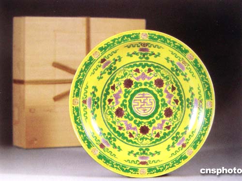 中國清朝乾隆皇帝御制的黃地五福捧壽紋粉彩大盤,如今估計(jì)二百萬人民幣以上,將在北京華辰十一月秋季拍賣。作者:賈國榮