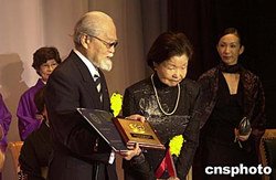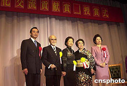 中國(guó)駐日本大使館二十五日舉行頒獎(jiǎng)儀式,日本松山芭蕾舞團(tuán)團(tuán)長(zhǎng)清水正夫、松山樹(shù)子和舞蹈家花柳千代等三位日本藝術(shù)界知名人士榮獲中國(guó)文化部頒發(fā)的“文化交流貢獻(xiàn)獎(jiǎng)”。作者:王健