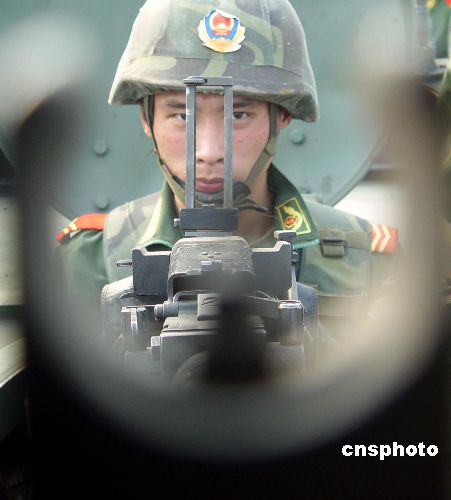 2004年10月25日,江蘇武警某部“反恐”分隊舉行“反恐”模擬演練,努力提高官兵在各種條件下處置突發(fā)事件能力。作者:王耀武