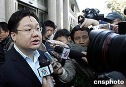 出席中超投資人聯(lián)席會議的大連實(shí)德俱樂部董事長徐明會后接受媒體采訪。
