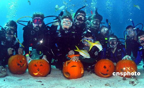 10月25日,在美國(guó)佛羅里達(dá)州25英尺海底上演了一場(chǎng)別開(kāi)生面的南瓜雕刻大賽,以此迎接即將到來(lái)的萬(wàn)圣節(jié)。Ic/cnsphoto