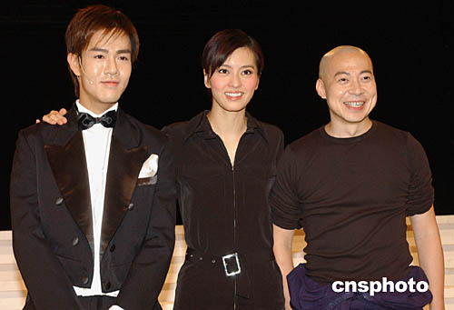 劇中演員詹瑞文、梁詠琪、藍(lán)奕邦(右起)為該劇排練