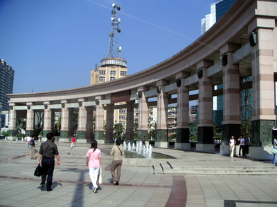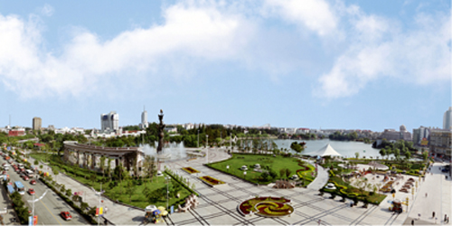 廣場整體上為北高南低、西高東低,強(qiáng)調(diào)其向水性和向陽性。人們既可以在這里聽音樂會,又可以在林間小憩、水中嬉戲,還可以在地下商場購物,了解蕪湖的人文歷史、廣場與大、小鏡湖、中山路步行街一起,組成了一個集觀光、休閑、購物、娛樂于一體的城市中心旅游區(qū)。