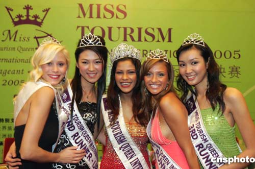 | 由中國全國工商聯(lián)旅游業(yè)商會主辦的二零零五年國際旅游小姐冠軍總決賽新聞發(fā)布會十月三十一日在北京舉行,獲得二零零四年國際旅游小姐總決賽前三名的選手(左三印度小姐ZABINAABDULRASHIDKHAN、左四德國小姐JOHNALENAKWASOW、左二中國小姐鈔俊男)等美女亮相人民大會堂,為開始啟動的二零零五年國際旅游小姐大賽助興。作者:毛建軍