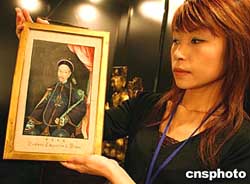 北京姑娘手捧一幅當(dāng)年洋畫(huà)家為中國(guó)清朝道光皇帝繪制的精致油畫(huà),此件一百多年收藏在歐洲的油畫(huà),十月末被送到中國(guó)北京和上海展示,將于十一月中旬在德國(guó)納高拍賣(mài)。作者:賈國(guó)榮