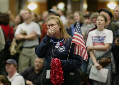中新網(wǎng)11月3日電 據(jù)美聯(lián)社報(bào)道,美國東部時(shí)間2004年11月2日(北京時(shí)間11月3日),在俄勒岡州西北部城市波特蘭舉行的美國民主黨俄勒岡州選舉集會上,為今年總統(tǒng)大選捏一把汗的特里薩·蒂特爾緊張地盯著反映兩位總統(tǒng)候選人得票情況的大屏幕,下意識地用手捂住了自己的嘴。(春風(fēng))