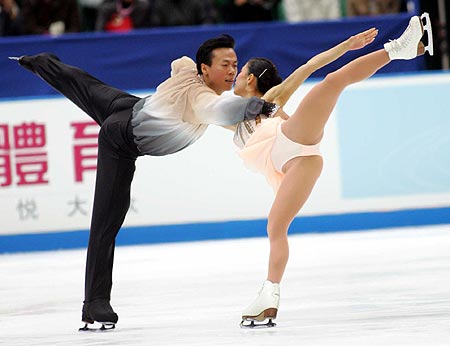 中國另一對組合、在美國站大獎賽上一鳴驚人奪得自己首個大獎賽冠軍的張丹、張昊,今天也穩(wěn)定發(fā)揮,排在第二位。盡管“功力”還沒有達到申雪、趙宏博那般爐火純青,但兩人最近問鼎世界冠軍也標(biāo)志著中國雙人滑已經(jīng)有了集團作戰(zhàn)的實力,加上去年世青賽亞軍獲得者丁楊、任重飛的助陣,應(yīng)該說明天中國隊奪取這枚金牌的保險系數(shù)很高。