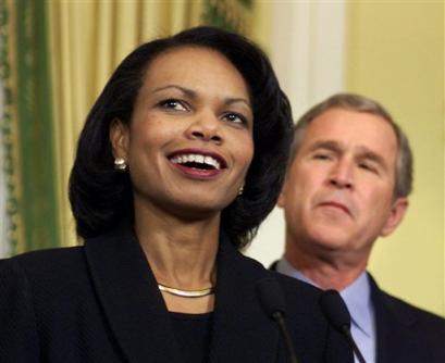 2001年布什就任總統(tǒng)后,賴斯出任國(guó)家安全事務(wù)助理一職,成為布什的親信。美國(guó)媒體最近推測(cè)稱,賴斯如果不當(dāng)國(guó)務(wù)卿,她甚至有希望接替拉姆斯菲爾德成為美國(guó)歷史上第一位女國(guó)防部長(zhǎng)。(來(lái)源:新華網(wǎng),作者:萬(wàn)宏)