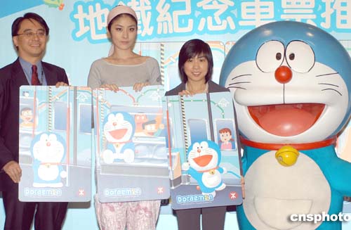 歌星陳慧琳11月17日在香港出席地鐵公司《多啦A夢地鐵紀(jì)念車票推廣儀式》,陳慧琳與漫畫明星“多啦A夢”及地鐵公司高層共同展示快將推出的一套紀(jì)念車票。作者:鄧慶樂