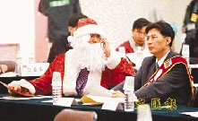 53位臺北縣“立委”參選人17日上午齊聚體育場進(jìn)行號次抽簽,為了搶鏡頭,各出奇招,有人扮成媽祖、還有人扮成了包青天、圣誕老人。支持者在現(xiàn)場揮舞旗幟、高舉活動招牌,大喊“當(dāng)選”。