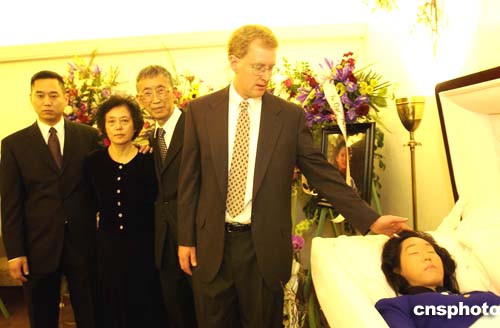 當(dāng)?shù)貢r(shí)間十一月十八日,自殺身亡的美國華裔女作家張純?nèi)邕z體告別儀式在加州洛斯加托斯市的殯儀館舉行,張純?nèi)绲恼煞虻栏窭刮莿e愛妻。作者:陳鋼