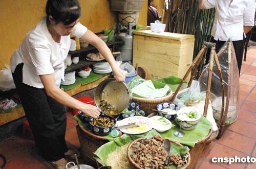 越南人心靈手巧,“好食館”廚師的刀功博得滿堂喝彩,切得纖細(xì)的果蔬,紅紅綠綠滿碟涼拌,煞是好看。各種膚色游客常常在品嘗美食之前,先拍照一番才舍得動筷。