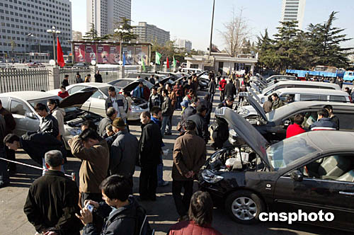 十一月二十七日,許多市民來(lái)到北京軍事博物館觀看并了解有關(guān)走私車拍賣的情況。