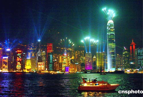 為迎接圣誕節(jié)的到來(lái)﹐周日的香港島主要建筑物在晚間20時(shí)燃放煙花﹐使得維多利亞港灣呈現(xiàn)一派節(jié)日景象。