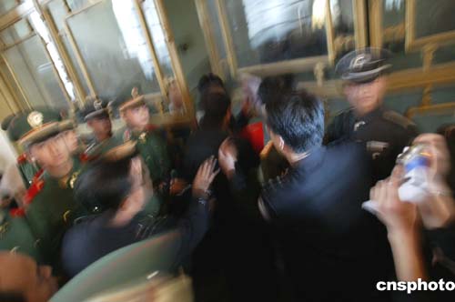 武警保護(hù)奔馳車競拍者安全離開拍賣現(xiàn)場。作者:任海霞