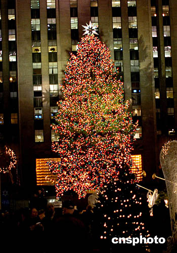 | 從當(dāng)?shù)貢r(shí)間十二月一日開始,美國(guó)紐約洛克菲勒中心近二十二米高的巨大圣誕樹,每天下午五點(diǎn)開始亮燈直至晚上十一點(diǎn)半,把紐約帶進(jìn)一年中最繽紛的圣誕季節(jié)。這棵圣誕樹樹頂懸掛著由兩萬(wàn)五千顆水晶組成的星星,璀璨奪目。作者:趙海燕
