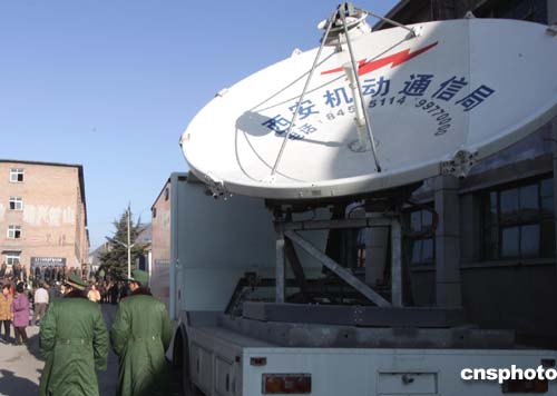 | 陜西銅川礦務(wù)局陳家山煤礦11月28日發(fā)生重大瓦斯爆炸事故后,中國(guó)各地媒體第一時(shí)間從四面八方蜂擁而至這個(gè)小山溝,各顯神通全方位報(bào)道事故的方方面面。圖為上海東方衛(wèi)視以每日兩萬元人民幣的租價(jià),從西安租用的衛(wèi)星通訊車。作者:任晨鳴