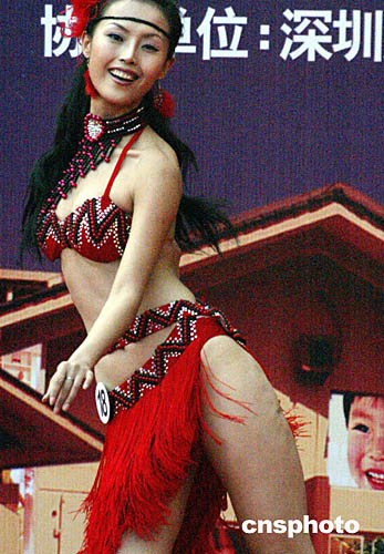 參加第十七屆世界模特小姐大賽中國(guó)賽區(qū)總決賽的選手,十月五日在深圳舉行大賽巡游時(shí)裝秀,圖為參賽佳麗表演熱情奔放的拉丁舞。中新社記者:錢興強(qiáng)
