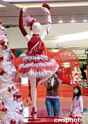 十二月初,盡管距離圣誕節(jié)還有一段時間,香港各大商場紛紛耗資裝飾,為即將到來的銷售旺季營造氣氛。圖為女童在又一城商場內,仿佛置身于搖曳生姿的舞蹈世界里。作者:譚達明