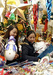 圣誕節(jié)日益臨近,形形色色的圣誕飾品在上海市場(chǎng)熱銷。作者:潘索菲