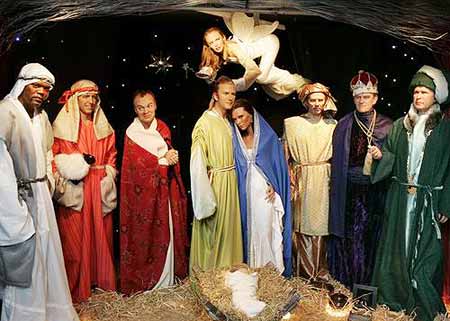 倫敦蠟像館重構(gòu)的耶穌誕生場景中,貝克漢姆及維多莉亞居中,站在耶穌身後,身邊尚有貌似英國首相布萊爾、菲臘親王及美國總統(tǒng)布什的東方三博士,而貌似好萊塢影星格蘭特、山姆杰克遜及清談節(jié)目名主持格雷姆諾頓的牧羊人。向以性感著稱的澳洲歌星Kylie Minogue,則成了貝克漢姆夫婦頭頂上飛舞的天使。