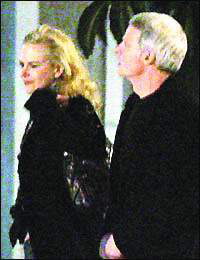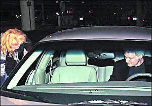 當晚,身著藍色毛衣和黑色休閑外套的史蒂夫用他的林肯轎車載著迷人的妮可前往他的錄音棚,車子一到達,妮可就迫不及待地鉆進去。妮可系著一條花絲巾,穿著一件黑色西服上衣,下車前,妮可不忘左張右望,看了又看。發(fā)現(xiàn)有人拍照時,機警地低下頭并用手遮臉,但神情并不慌張,臉上倒掛著甜蜜的笑。一路上兩人談?wù)勑π,廝守3個小時后,史蒂夫才送妮可回家,兩人牽手下車,朝妮可家中走去。