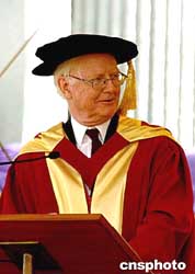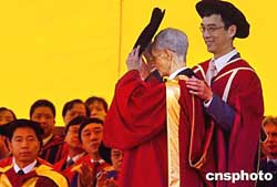 一九九六年諾貝爾經(jīng)濟(jì)學(xué)獎獲得者的J James A Mirrlees爵士,12月9日獲香港中文大學(xué)社會科學(xué)博士。作者:宋吉河