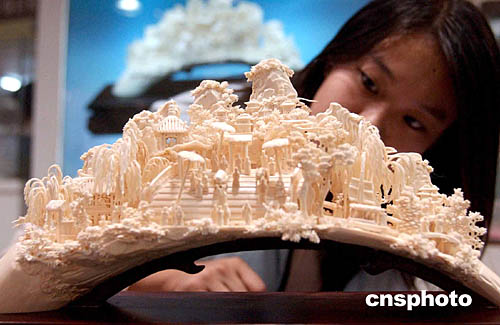 十二月十日,一座長47厘米、高24厘米的精美《清明上河圖》象牙雕刻工藝橋,亮相王府井工美大廈四層玉石文化商場。該作品選取明代張擇端《清明上河圖》畫卷中的一個場景,具有很高的藝術(shù)欣賞價值和收藏價值。象牙素有“白色的金子”之美譽,因其資源的稀缺性、制品的珍貴性,為收藏價值預(yù)留了無限空間。作者:韓藝冰