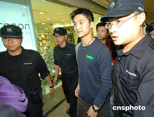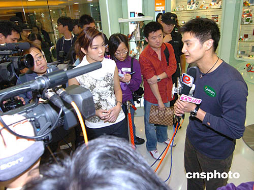 中國(guó)跳水金牌選手田亮11日來(lái)到香港時(shí)代廣場(chǎng)8層電子產(chǎn)品專賣店﹐為該店圣誕節(jié)禮品促銷造勢(shì)。中新社記者:趙振清