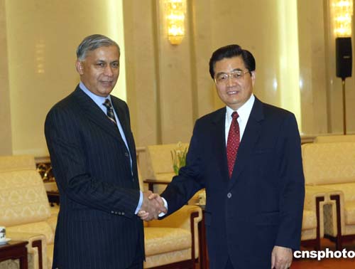 中新社北京十二月十六日電(記者齊彬)中國(guó)國(guó)家主席胡錦濤今天下午在會(huì)見(jiàn)巴基斯坦總理阿齊茲時(shí)表示,中方愿與巴方進(jìn)一步強(qiáng)化反恐合作,共同打擊地區(qū)“三股勢(shì)力”。